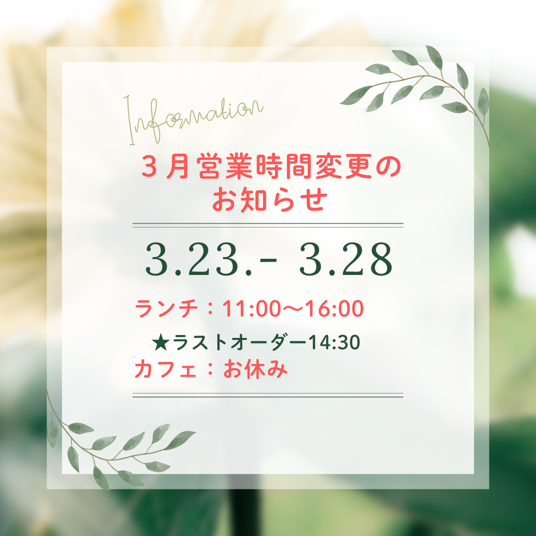 3月営業時間変更のお知らせ